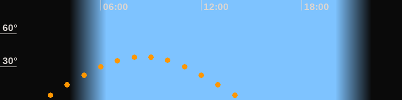 Höchster Stand (Kulmination)08:30 Uhr (h = 39,3°)