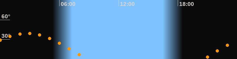 Höchster Stand (Kulmination)02:43 Uhr (h = 39,3°)