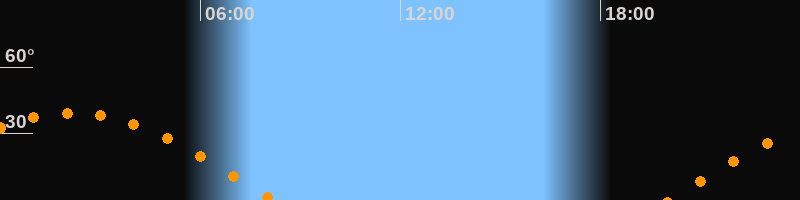 | Aufgang | 20:03 Uhr im Osten (αAz = 89,3°) |
