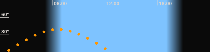 Höchster Stand (Kulmination)06:39 Uhr (h = 39,3°)