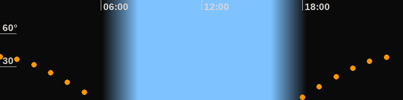 | Aufgang | 17:38 Uhr im Osten (αAz = 89,3°) |