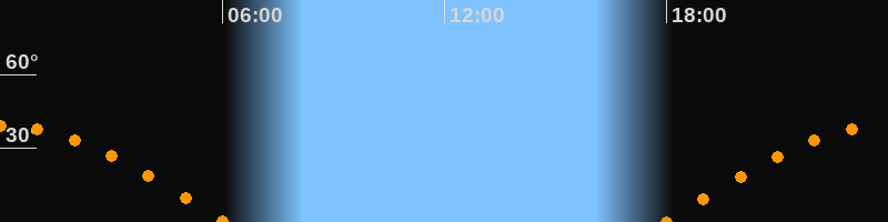 | Aufgang | 17:55 Uhr im Osten (αAz = 89,3°) |