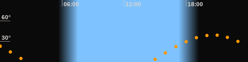 | Aufgang | 14:29 Uhr im Osten (αAz = 89,3°) |