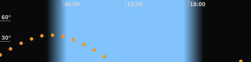 | Untergang | 10:55 Uhr im Westen (αAz = 270,7°) |