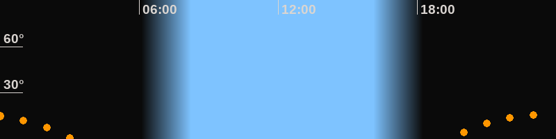 Untergang03:12 Uhr im Südwesten (αAz = 231,9°)
