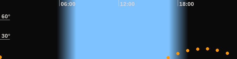 Untergang00:28 Uhr im Südwesten (αAz = 231,9°)