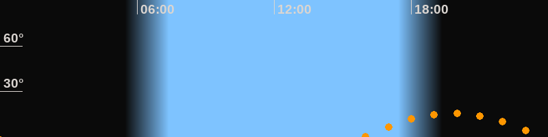 Untergang23:44 Uhr im Südwesten (αAz = 231,9°)