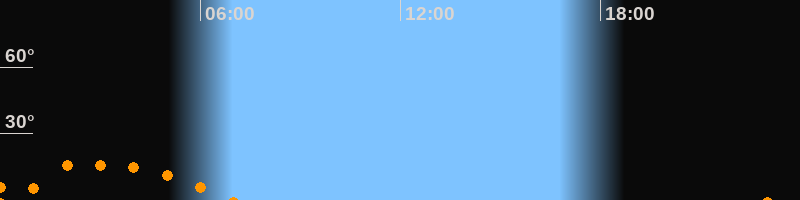 Aufgang23:02 Uhr im Südosten (αAz = 128,1°)