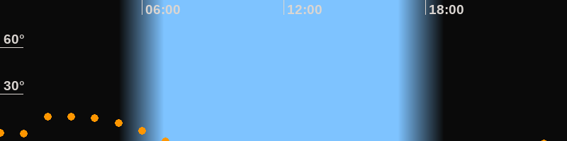 Aufgang23:07 Uhr im Südosten (αAz = 128,1°)