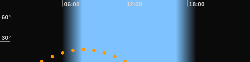 | Höchster Stand (Kulmination) | 08:00 Uhr (h = 18,3°) |
