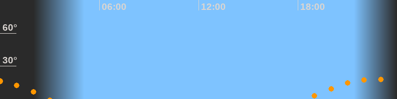 | Aufgang | 18:32 Uhr im Südosten (αAz = 123,7°) |
