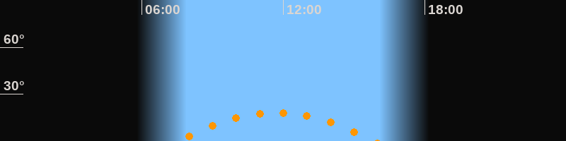 | Höchster Stand (Kulmination) | 11:41 Uhr (h = 18,3°) |