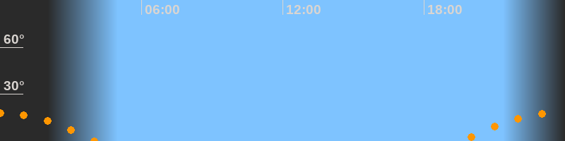 | Untergang | 04:02 Uhr im Südwesten (αAz = 236,3°) |