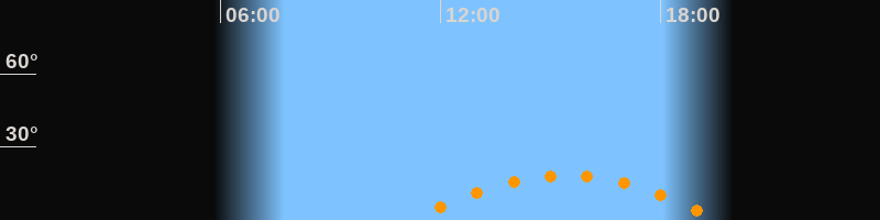 | Höchster Stand (Kulmination) | 15:25 Uhr (h = 18,3°) |