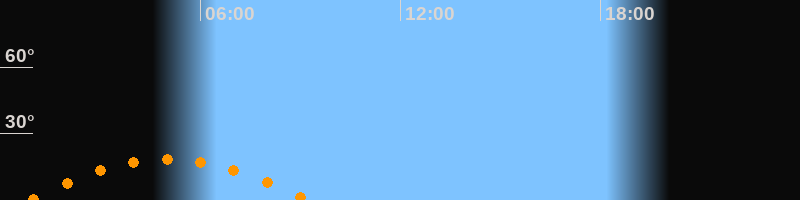 | Untergang | 09:14 Uhr im Südwesten (αAz = 236,3°) |