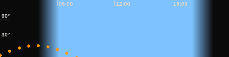 | Aufgang | 23:29 Uhr im Südosten (αAz = 123,7°) |