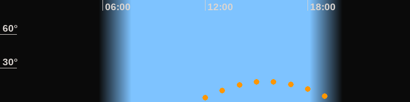 | Aufgang | 11:24 Uhr im Südosten (αAz = 123,7°) |