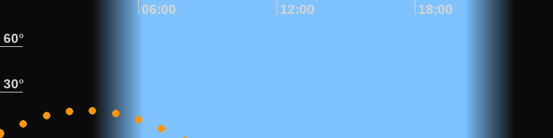| Aufgang | 23:28 Uhr im Südosten (αAz = 123,7°) |