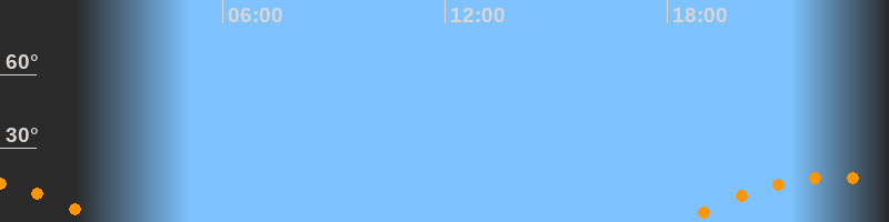 | Aufgang | 18:22 Uhr im Südosten (αAz = 123,7°) |
