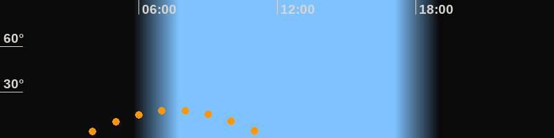 | Höchster Stand (Kulmination) | 07:32 Uhr (h = 18,3°) |