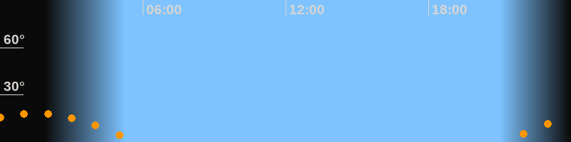 | Untergang | 05:39 Uhr im Südwesten (αAz = 236,3°) |