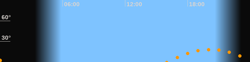 | Aufgang | 15:58 Uhr im Südosten (αAz = 123,7°) |
