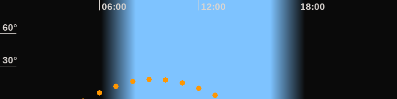 | Höchster Stand (Kulmination) | 09:20 Uhr (h = 18,3°) |