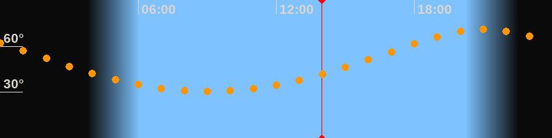 Höchster Stand (Kulmination)21:10 Uhr (h = 71°)