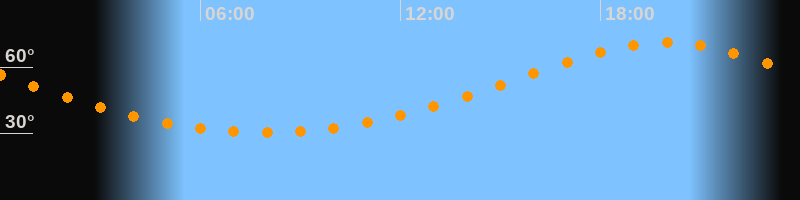 Höchster Stand (Kulmination)19:56 Uhr (h = 71°)