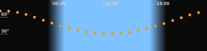 Höchster Stand (Kulmination)00:32 Uhr (h = 71°)