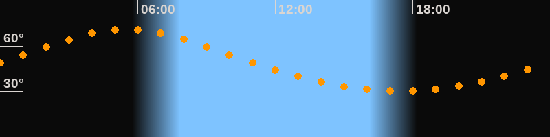Höchster Stand (Kulmination)05:30 Uhr (h = 71°)