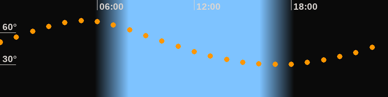 Höchster Stand (Kulmination)05:08 Uhr (h = 71°)
