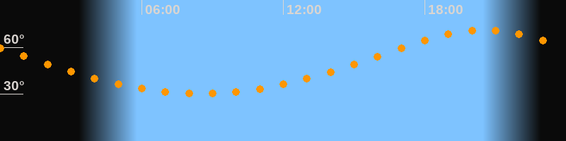 Höchster Stand (Kulmination)20:29 Uhr (h = 71°)