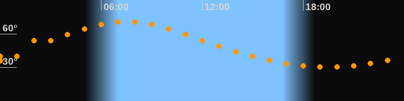 Höchster Stand (Kulmination)07:30 Uhr (h = 71°)