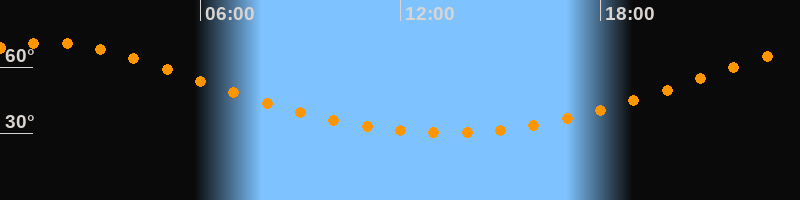 Höchster Stand (Kulmination)01:24 Uhr (h = 71°)