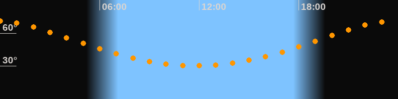 Höchster Stand (Kulmination)23:46 Uhr (h = 71°)