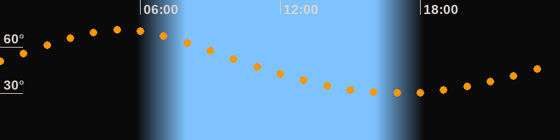 Höchster Stand (Kulmination)05:08 Uhr (h = 71°)