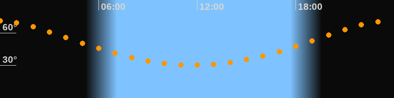 Höchster Stand (Kulmination)23:46 Uhr (h = 71°)