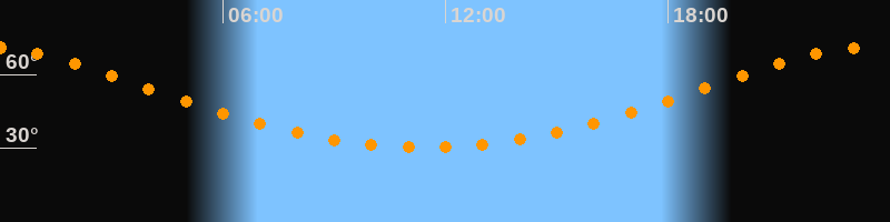 Höchster Stand (Kulmination)23:26 Uhr (h = 71°)