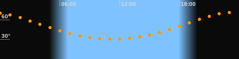 Höchster Stand (Kulmination)23:14 Uhr (h = 71°)