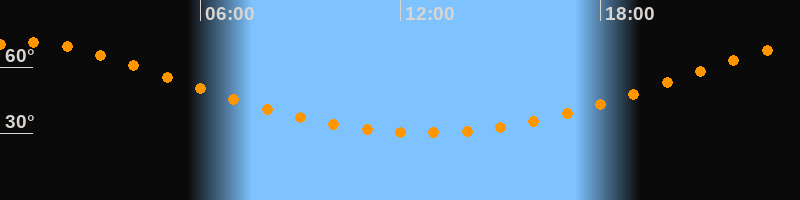 Höchster Stand (Kulmination)00:42 Uhr (h = 71°)