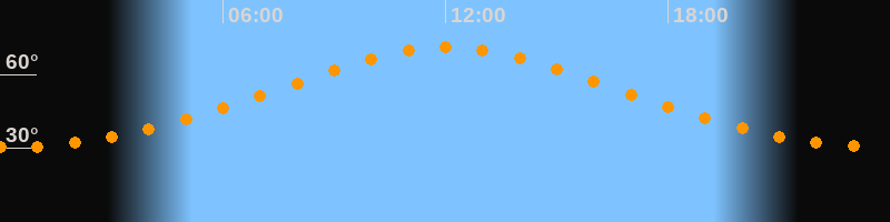 Höchster Stand (Kulmination)12:03 Uhr (h = 71°)