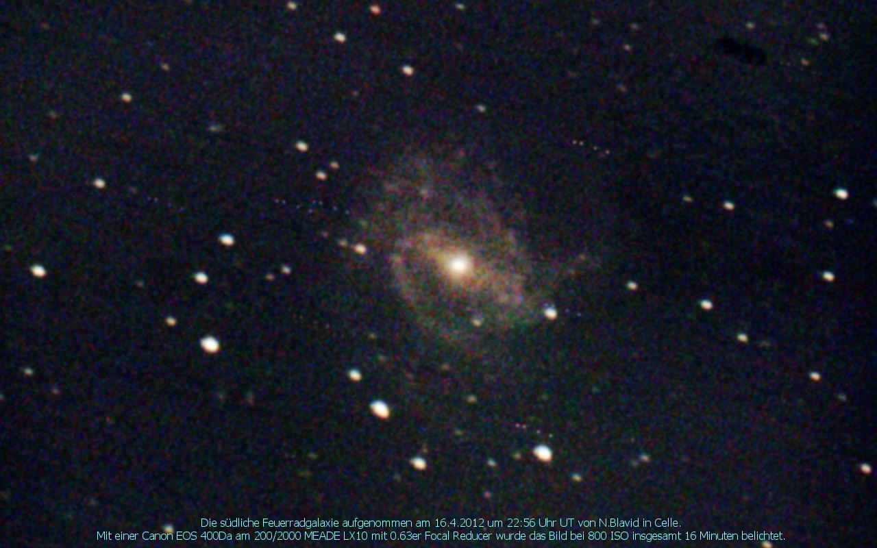 Die südliche Feuerradgalaxie M 83 ist eine Spiralgalaxie in der M83-Gruppe, die der lokalen Gruppe benachbart ist. Sie ist vom Typ SABc. Entdeckt wurde sie 1751 von Nicolas Louis de Lacaille. Aufgrund ihrer sehr südlichen Lage ist sie in Mitteleuropa nur schwer zu beobachten und immer sehr horizontnah.
