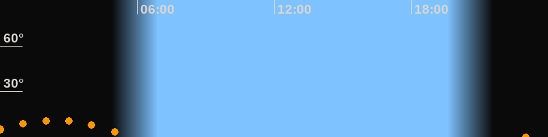 Aufgang22:55 Uhr im Südosten (αAz = 137,1°)