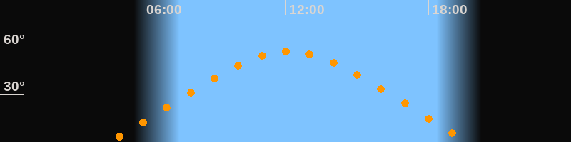 | Höchster Stand (Kulmination) | 12:07 Uhr (h = 57,5°) |