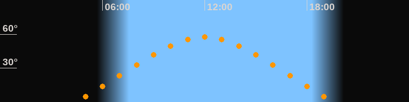 | Höchster Stand (Kulmination) | 11:59 Uhr (h = 57,5°) |