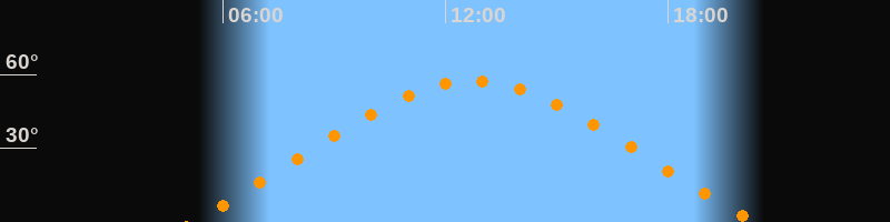 | Höchster Stand (Kulmination) | 12:45 Uhr (h = 57,5°) |