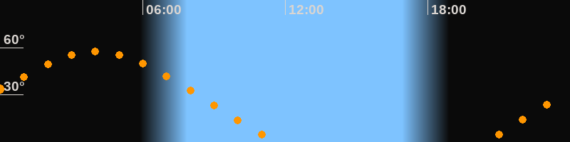 | Aufgang | 20:19 Uhr im Nordosten (αAz = 59,6°) |