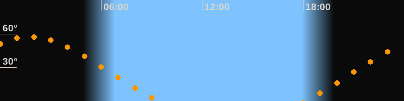 | Aufgang | 18:05 Uhr im Nordosten (αAz = 59,6°) |