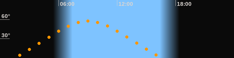| Höchster Stand (Kulmination) | 09:00 Uhr (h = 57,5°) |